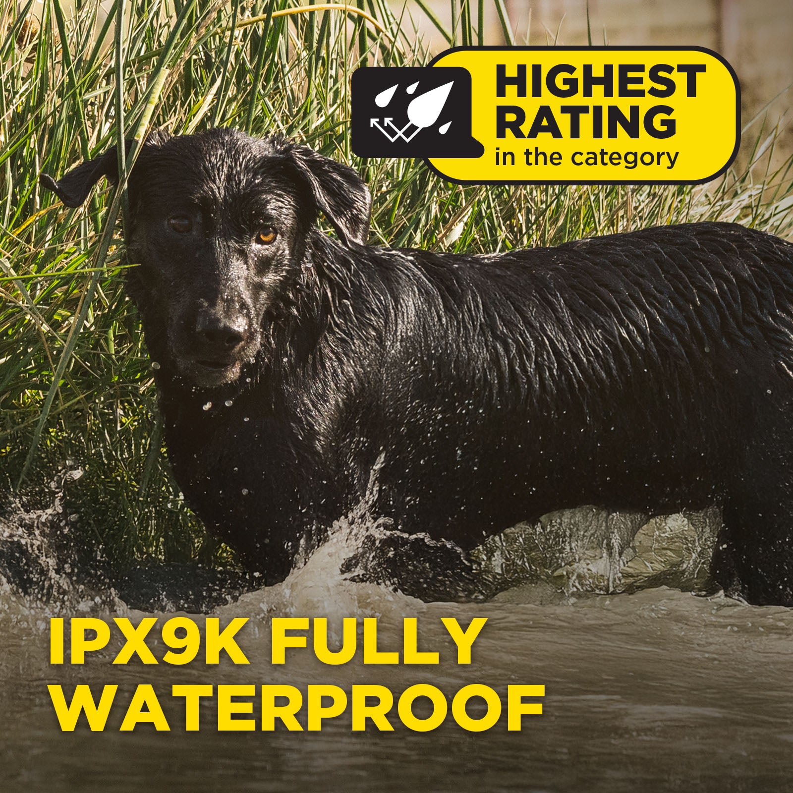 The 1900X features a redesigned remote and e-collar setup with a double-layered protective remote front plate, central Nick/Continuous command button, tone, boost, safety lock, XPP Vibration, LED light button, and a large LED screen. It can also support up to 3 dogs.
