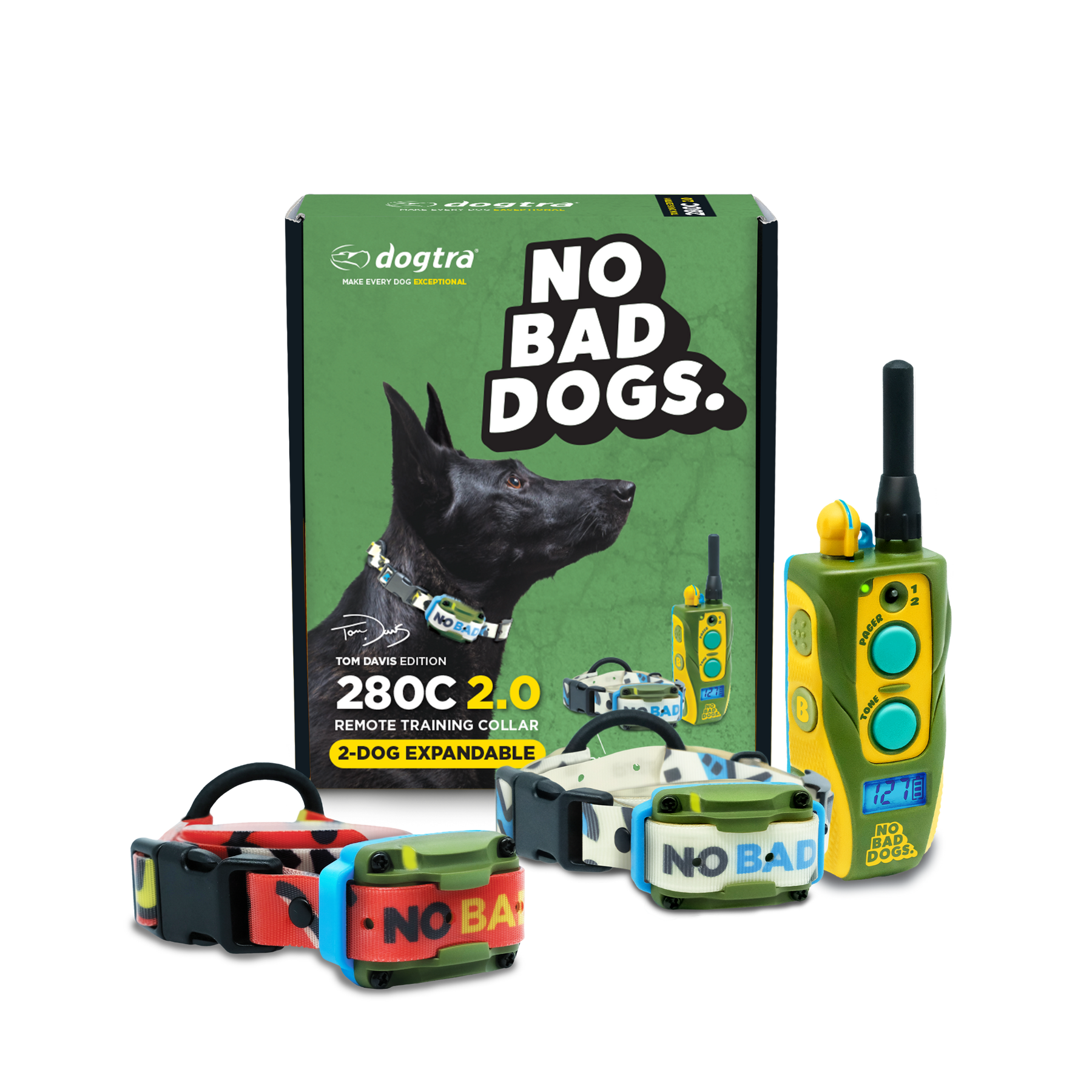 - Tom Davis Edition 280C 2.0 E-Collar – Our newest e-collar collaboration with Dog Trainer Tom Davis and inspired by his No Bad Dogs mantra. Built with input from Tom’s community, it comes in bold, audience-voted green and yellow for a standout look. Key features include: