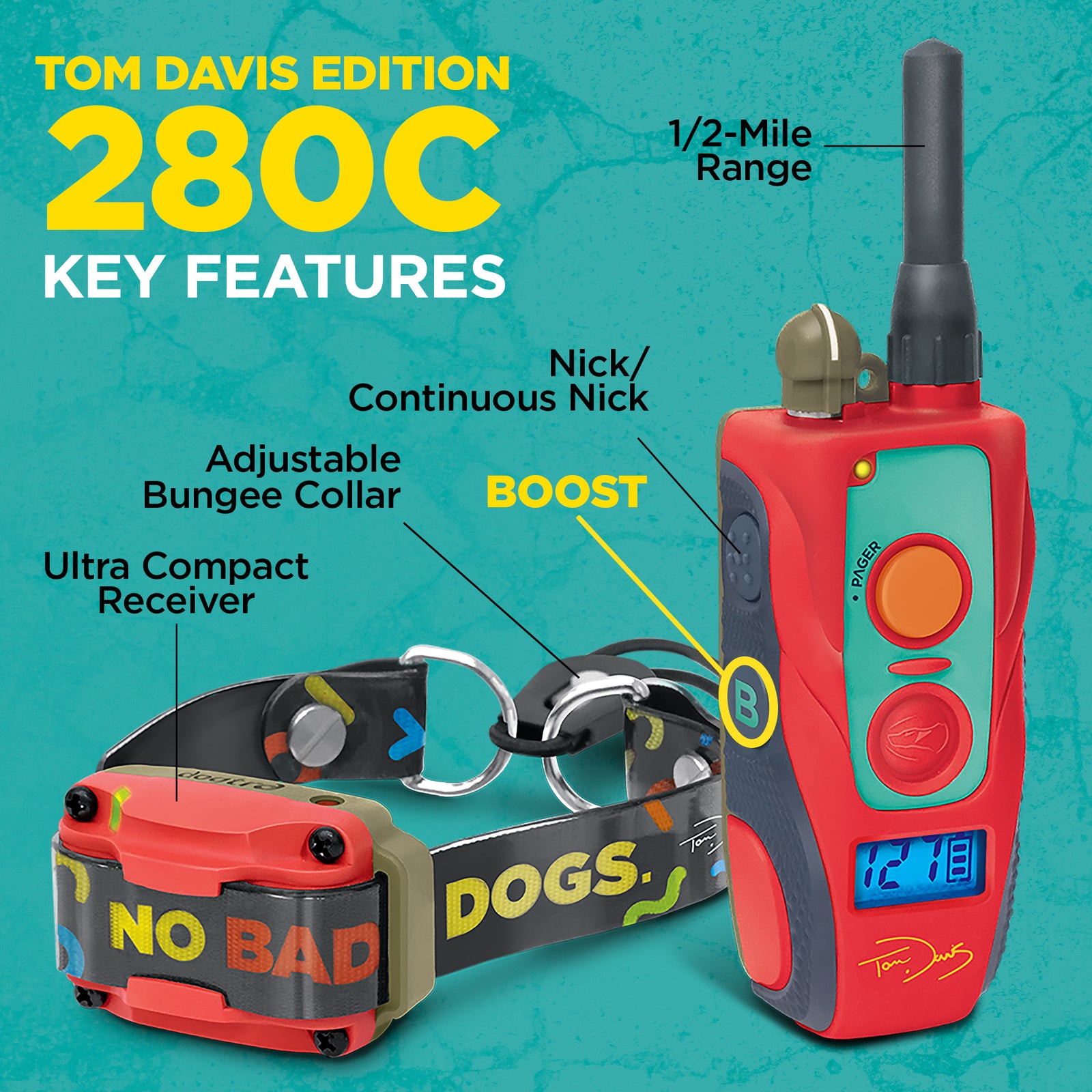 The Tom Davis 280C Boost & Lock e-collar boasts an IPX9K waterproof rating. This durability makes it perfect for training in all weather conditions, providing reliability and performance in any environment.